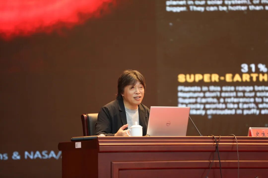 中国天文学会理事长、云南天文台韩占文院士以“星星与宇宙:一场天文之旅”为题,向青海柴达木职业技术学院师生讲述了恒星从诞生、演化直至壮丽谢幕的全过程,阐述了引力波的发现与验证、双星的形成与演化等前沿科学问题。
