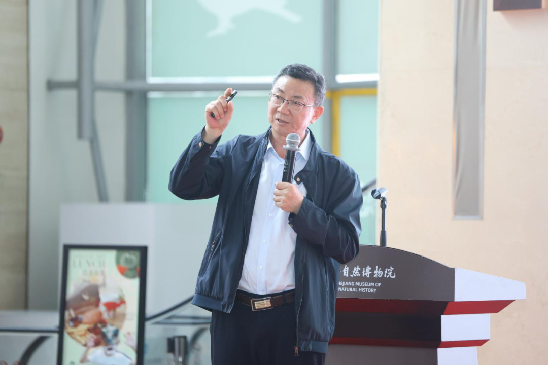 当日,周忠和还走进浙江自然博物院杭州馆,作题为《鸟类起源与早期演化的故事》的科普报告。百余名专业爱好者跟随周忠和完成了一场“时空之旅”,不少小观众们席地而坐,现场各种互动不断,科普报告结束后周忠和还被一众大小观众围着签名。