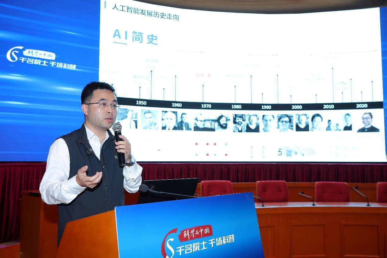 中国科学院自动化研究所正高级工程师、中科闻歌首席执行官罗引作《人工智能进化简史:是超级工具,还是未来伙伴?》科普报告。