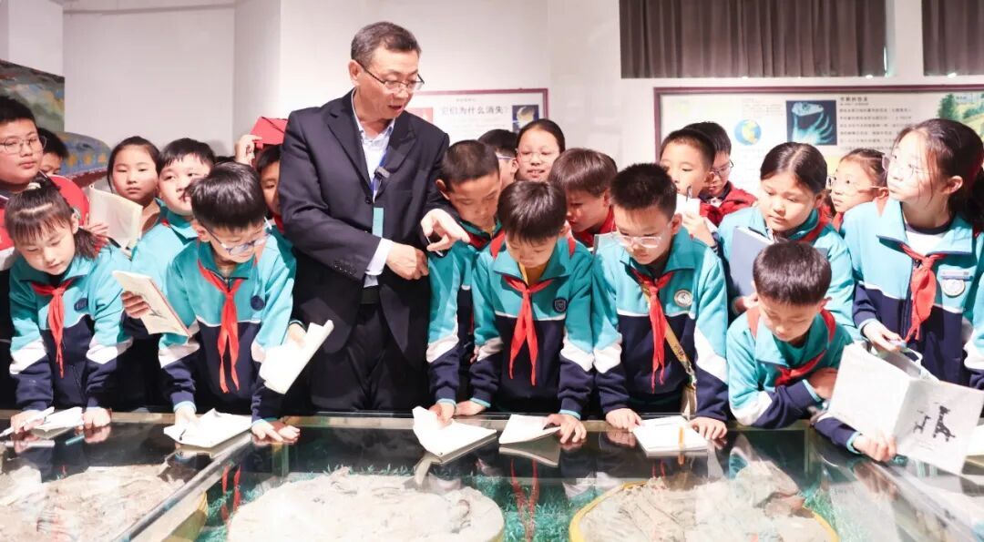 在现场互动环节,周忠和院士就现场提问的关于古生物习性、化石挖掘保护、AI复原古生物等问题进行解答与引导,鼓励孩子们保持好奇、勇于探索,现场掌声不断、气氛热烈。活动最后,师生们跟随院士等走进“千龙厅”等特色展厅,近距离观赏化石、聆听现场讲解。